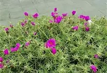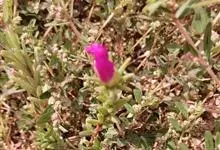 大花马齿苋:一年生草本,高10-30厘米。茎平卧或斜升,紫红色,多分枝,节上丛生毛。叶密集枝端,较下的叶不规则互生,叶片细圆柱形,无毛。花单生或数朵簇生枝端,直径2.5-4厘米,…全部>>