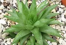 条纹十二卷 Haw.)是芦荟科十二卷属植物,为多年生肉质草本植物。植株高度10-15厘米,其呈莲座状生长;叶片紧密轮生在茎轴上,柔软多汁,呈长三角状披针形,极肥厚;叶面光滑、扁平,色深绿;叶背突起,…全部>>
