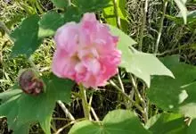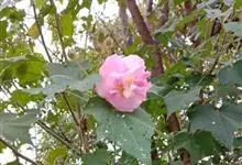 木芙蓉,锦葵科木槿属落叶灌木或小乔木。小枝上有细绒毛;叶片为卵状心形,托叶为披针形,常早落;花单生,花萼为钟形,花冠初为白色或淡红色,后逐渐变为深红色;果实为扁球形,有淡黄色的毛附着。花期8到10月。…全部>>