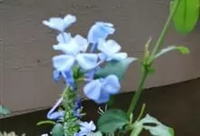蓝花丹是白花丹科、白花丹属的常绿亚灌木。高约1米;叶薄,呈菱状卵形至狭长卵形;穗状总状花序,总花梗短,花冠淡蓝色至蓝白色,呈倒卵形,苞片呈线状狭长卵形,小苞呈狭卵形或长卵形,…全部>>