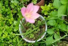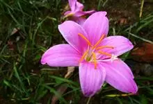 小韭兰学名韭菜莲又名风雨花、菖蒲莲、红玉帘和旱水仙,多年生草本,鳞茎卵球形,基生叶常数枚簇生,线形,扁平,花单生于花茎顶端,下有佛焰苞状总苞,花玫瑰红色或粉红色,蒴果近球形,种子黑色,花期夏秋。韭莲…全部>>