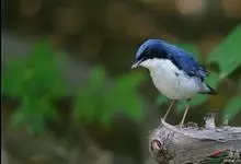 小仙鹟:体长11-13厘米,是一种深色鹟。雄鸟深蓝,脸侧及喉黑,臀白,前额、颈侧及腰为闪辉蓝色。与大仙鹟的区别在体型较小,胸蓝色,臀白色。雌鸟褐色,翼及尾棕色,颈侧具闪辉蓝色斑块,喉皮黄,项纹浅皮黄。…全部>>