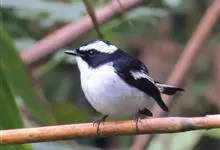 小斑姬鹟体长12厘米,体羽是黑白两色或褐色及白色。栖息于热带、亚热带的潮湿低地森林和山地森林。常单独或成对活动,多在树冠下层低枝处活动和觅食,也常飞到空中捕食飞行性昆虫,捉到昆虫后又落于较高的枝头上。…全部>>