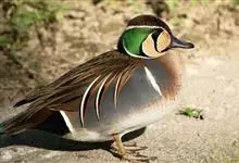 绿翅鸭是小型鸭类,体长37厘米,体重约0.5千克。嘴脚均为黑色。雄鸟头至颈部深栗色,头顶两侧从眼开始有一条宽阔的绿色带斑一直延伸至颈侧,尾下覆羽黑色,两侧各有一黄色三角形斑,在水中游泳时,极为醒目。…全部>>