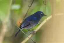 小仙鹟:体长11-13厘米,是一种深色鹟。雄鸟深蓝,脸侧及喉黑,臀白,前额、颈侧及腰为闪辉蓝色。与大仙鹟的区别在体型较小,胸蓝色,臀白色。雌鸟褐色,翼及尾棕色,颈侧具闪辉蓝色斑块,喉皮黄,项纹浅皮黄。…全部>>