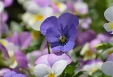 角堇:为堇菜科堇菜属多年生草本植物。株高10-30厘米 ,宽幅20-30厘米。具根状茎。茎较短而直立,分枝能力强。花两性,两侧对称,花梗腋生,花瓣5,花径 2.5-4.0厘米。花色丰富,…全部>>