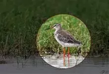 红脚鹬:体长28厘米,上体褐灰,下体白色,胸具褐色纵纹。飞行时腰部白色明显,次级飞羽具明显白色外缘。尾上具黑白色细斑。虹膜黑褐色,嘴长直而尖,基部橙红色,尖端黑褐色。脚较细长,亮橙红色,…全部>>