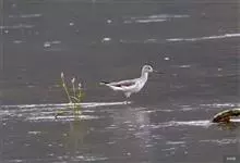 泽鹬:小型涉禽,体长19-26厘米。嘴长,相当纤细,直而尖。颜色为黑色,基部绿灰色,脚细长,暗灰绿色或黄绿色。夏季上体灰褐色具黑色斑,腰白色并向下呈楔形延伸。下体白色,颈、胸具细的黑色纵纹。…全部>>