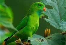 短尾鹦鹉是典型的攀禽,体形小,翅长在90毫米左右;尾较翅短;嘴较细削,其厚度不及嘴峰长度;腰下有朱红色块斑;雄鸟喉部有蓝色块斑。鸟喙强劲有力,喙钩曲,上颌具有可活动关节,喙基部具有腊膜。肌肉质舌厚。…全部>>