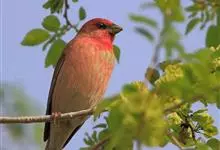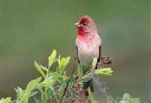 普通朱雀是雀形目雀科朱雀属鸟类,又名红朱雀、马料、青麻料。雄鸟上体红色,下体淡红色;头部、喉部、胸部及腰部亮红色;背部褐色染红色;两翼及尾黑褐色,羽缘染红色。雌鸟上体橄榄褐色,下体近白色,…全部>>