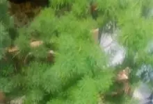 蓬莱松是天门冬科、天门冬属多年生丛生草本植物。宿存,圆柱形肉质根,纵截面为绿色和表面灰色。植株高可达3米。茎呈圆柱形或近四边形,底部木质化,具有灰色或灰褐色。幼嫩的茎在每个节上都被紫绿色鳞片包,…全部>>