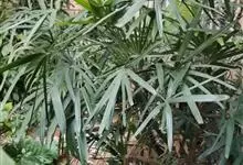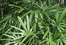 矮棕竹:丛生灌木,高1米或更高些,茎圆柱形,有节,上部被紧密的网状纤维的叶鞘,纤维毛发状,淡褐色。叶掌状深裂,裂片7-20片,线形,具1-2条肋脉,叶柄约与叶片等长,较细,两面凸起,边缘平滑。花雌雄…全部>>