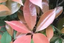 石楠 Kalkman),是蔷薇科石楠属的常绿乔木,高5~12米,株型紧凑,树冠圆球形。树枝为褐灰色;鳞片为褐色,没有毛;叶片革质,长椭圆至侧卵状椭圆形,有锯齿,新叶红色光亮。复伞房花序,白色小花,…全部>>