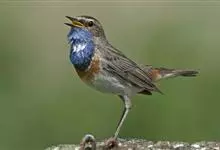 蓝点颏亦称“蓝喉歌鸲”,通称蓝靛颏儿。身体大小和麻雀相似,体长12-13厘米,体重17-18克。头部、上体主要为土褐色。眉纹白色。尾羽黑褐色,基部栗红色。颏部、喉部辉蓝色,下面有黑色横纹。下体白色。…全部>>