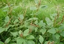 反枝苋是苋科苋属的一年生草本植物。株高达1米;茎密被柔毛;叶菱状卵形或椭圆状卵形,先端锐尖或尖凹,两面及边缘被柔毛,下面毛较密;穗状圆锥花序,顶生花穗较侧生者长;花被片长圆形或长圆状倒卵形,…全部>>