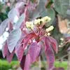 紫锦木是大戟科、大戟属的常绿乔木。叶圆卵形,主脉于两面明显,侧脉数对,边缘全缘,两面红色;花序生于二歧分枝的顶端,总苞阔钟状,裂片呈三角形,边缘具毛,腺体深绿色呈半圆形,…全部>>