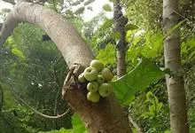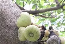 大果榕是桑科榕属的小乔木,株高可达10米;幼枝被柔毛;叶互生,宽卵状心形或近圆形;雄花无梗、匙形、花丝长,雌花生于雌株榕果内,子房白色;榕果簇生于树干基部或老茎短枝上、扁球形或陀螺形,…全部>>