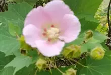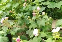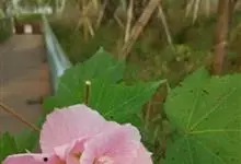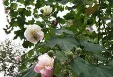 木芙蓉,锦葵科木槿属落叶灌木或小乔木。小枝上有细绒毛;叶片为卵状心形,托叶为披针形,常早落;花单生,花萼为钟形,花冠初为白色或淡红色,后逐渐变为深红色;果实为扁球形,有淡黄色的毛附着。花期8到10月。…全部>>