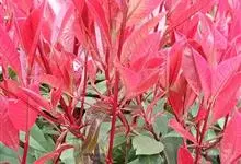 石楠 Kalkman),是蔷薇科石楠属的常绿乔木,高5~12米,株型紧凑,树冠圆球形。树枝为褐灰色;鳞片为褐色,没有毛;叶片革质,长椭圆至侧卵状椭圆形,有锯齿,新叶红色光亮。复伞房花序,白色小花,…全部>>