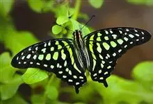 木兰青凤蝶是鳞翅目凤蝶科青凤蝶属昆虫,又名青斑凤蝶、多斑青凤蝶、帝凤蝶、瑶风蝶。成虫头、胸灰黑色;腹面及腹侧为浅黄绿色;翅黑色;前翅前缘有7个新月形或不规则形的浅绿色斑纹排成一列,…全部>>