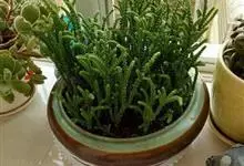 筒叶花月,是景天科青锁龙属的多年生草本植物。植株多分株,灌木状,茎较粗壮,圆柱形,表皮灰褐色;叶片肉质,互生,呈圆筒状,簇生于茎或分枝顶端,叶端呈斜截形,截面为椭圆形;花呈星状,淡白色;花期秋季。…全部>>