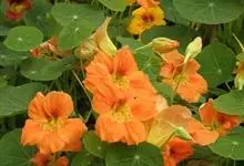 旱金莲是旱金莲科旱金莲属蔓生一年生草本植物。叶互生,叶柄向上扭曲,盾状,叶圆形,具波状浅缺刻,下面疏被毛或有乳点;花黄、紫、桔红或杂色,花托杯状,花瓣为圆形,边缘具缺刻;果实为扁球形;花果期6-10月,…全部>>