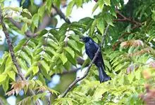 发冠卷尾是中型鸟类,体长28-35厘米。通体绒黑色缀蓝绿色金属光泽,额部具发丝状羽冠,外侧尾羽末端向上卷曲。栖息于海拔1500米以下的低山丘陵和山脚沟谷地带,多在常绿阔叶林、次生林或人工松林中活动。…全部>>