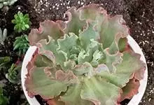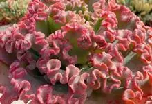 女王花笠,又名扇贝石莲花、女王花舞笠,是景天科拟石莲花属的多肉植物。由美国加利福尼亚州的育种师Dick Wright于1964年培育。特征是呈大波浪状褶皱的红色叶缘和气质高贵的粉紫色调。…全部>>