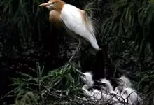 牛背鹭:体较肥胖,喙和颈较短粗。夏羽大都白色;头和颈橙黄色,前颈基部和背中央具羽枝分散成发状的橙黄色长形饰羽;前颈饰羽长达胸部,背部饰羽向后长达尾部,尾和其余体羽白色。冬羽通体全白色,个别头顶缀有黄色,…全部>>