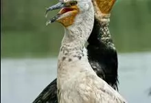 普通鸬鹚是属于鲣鸟目鸬鹚科鸬鹚属鸟类,又名水老鸦、鱼鹰、乌鬼、黑鱼郎等。体长720—900毫米,雌雄同型。通体黑色,有绿褐色金属光泽;喙厚重,喙基和喉囊橙黄色,脸颊及喉白色;夏羽颈及头饰具白色丝状羽,…全部>>