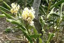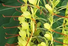 黄姜花:姜科,姜花属多年生草本草本芳香花卉,秋冬季开花,穗状花序,长圆形;苞片长椭圆形,覆瓦状排列,每一苞片内有花3-5朵;花深黄色,形似蝴蝶,气味芬芳纯正,沁人心脾;唇瓣倒心形,黄色,…全部>>
