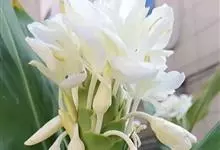 姜花又名野姜花。是姜科姜花属的多年生草本植物,茎高1-2米;叶片长圆状披针形或披针形,叶面光滑,叶背被短柔毛;穗状花序顶生,椭圆形,花芬芳,白色;蒴果卵状三棱形,微黄绿色;种子鲜红色,具橘红色的假种皮。…全部>>