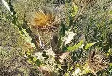 水飞蓟 Gaertn.),又名水飞雉、奶蓟、老鼠筋、乳蓟子,是菊科水飞蓟属的一种一年生或二年生草本植物。株高1.2m。茎直立有棱,多分枝,光滑或被蛛丝状毛。叶互生,莲座状基生叶常平铺地面,…全部>>