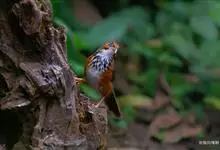 斑胸钩嘴鹛是雀形目、画眉科、钩嘴鹛属的鸟类。体型略大的钩嘴鹛。无浅色眉纹,脸颊棕色。甚似锈脸钩嘴鹛但胸部具浓密的黑色点斑或纵纹。栖息于低山地区及平原的林地灌丛间,在林间作短距离飞翔。…全部>>