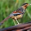 大噪鹛:中型鸟类,体长32-36厘米。额至头顶黑褐色,背栗褐色满杂以白色斑点,斑点前缘或四周还围有黑色。初级覆羽、大覆羽和初级飞羽具白色端斑。尾特长,均具黑色亚端斑和白色端斑。颏、喉棕褐色,…全部>>