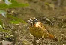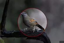 蓝翅噪鹛:噪鹛科、彩翼噪鹛属动物。中型鸟类,体长22-25厘米。上体棕橄榄褐色密被黑色鳞状斑,眼蓝白色,眼上有一长而宽阔的黑色眉纹,从眼先直到颈侧。下体棕褐色被黑色鳞状斑;尾上和尾上覆羽栗色,…全部>>
