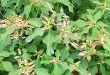 猩猩草:常绿或半常绿灌木,盆栽时株高0.5米-2米,在亚热带地区可长到6米以上。茎直立而光滑,单叶互生,卵状椭圆形至阔披针形,具不规则的深缺刻。长10-15厘米。花小,有蜜腺,排列成密集的伞房花序。…全部>>