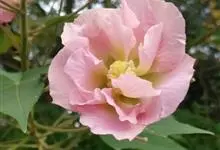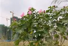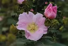 木芙蓉,锦葵科木槿属落叶灌木或小乔木。小枝上有细绒毛;叶片为卵状心形,托叶为披针形,常早落;花单生,花萼为钟形,花冠初为白色或淡红色,后逐渐变为深红色;果实为扁球形,有淡黄色的毛附着。花期8到10月。…全部>>