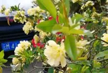 黄木香花 Rehd.)是蔷薇科、蔷薇属植物,为木香花的变型品种,攀缘小灌木,高可达6米。小叶3-5枚,稀7枚,小叶片椭圆形或长圆状披针形,先端急尖或稍钝,基部近圆形或宽楔形,边缘有紧贴细锯齿。花小型,…全部>>
