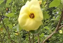 海滨木槿是锦葵科木槿属植物,落叶小乔木,株高3-5米,胸径20厘米,扁球形树冠,枝叶繁盛。厚纸质单叶互生,扁圆形、倒卵形或宽倒卵形,先端钝近平,具短突尖,基部圆形或浅心形,叶缘中上部具细圆齿,…全部>>