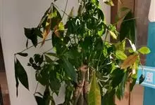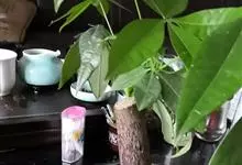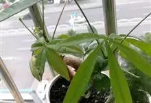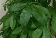 瓜栗 Walp. ),俗称发财树,木棉科小乔木,高4-5米,树冠较松散,幼枝栗褐色,无毛。小叶具短柄或近无柄。花单生枝顶叶腋;花梗粗壮,被黄色星状茸毛,脱落;萼杯状,近革质;花瓣淡黄绿色,狭披针形…全部>>