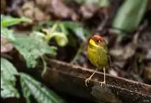 栗头地莺:小型鸣禽。体长约10厘米。体型纤细,是中国体型最小的鸟类之一;喙细尖,上喙先端多有缺刻;翅短圆;尾短至中等;腿短而细。羽色以灰、褐及橄榄绿为主,雌雄羽色相似。栖息于灌木或稀疏林内,…全部>>