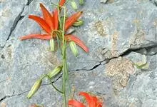 山丹是百合科百合属的多年生草本植物。鳞茎卵形或圆锥形,鳞片长圆形或长卵形,白色;叶散生茎中部,线形,边缘有乳头状突起;花单生或数朵成总状花序,花鲜红色,常无斑点,花被片反卷,…全部>>