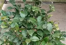 滇山茶:灌木至小乔木,有时高达15米,嫩枝无毛。叶阔椭圆形,上面干后深绿色,发亮,下面深褐色,无毛,侧脉6-7对,边缘有细锯齿。花顶生,红色,直径10厘米,无柄;苞片及萼片10-11片,花瓣红色,…全部>>
