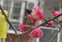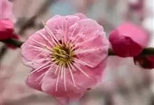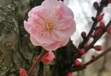 宫粉梅 Rehd.)是蔷薇科、李属植物,梅花品系中真梅系直枝梅类宫粉型,其花复瓣至重瓣,呈或深或浅的红色。落叶乔木,高达10米。树干褐紫色,有纵驳纹,小枝细而无毛,多为绿色。叶广卵形至卵形,…全部>>