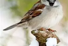 家麻雀:共有13个亚种。是小型鸟类,体长14-16厘米。背栗红色具黑色纵纹,两侧具皮黄色纵纹;颏、喉和上胸黑色,脸颊白色,其余下体白色,翅上具白色带斑。雄鸟与树麻雀的区别在顶冠及尾上覆羽灰色,耳无黑…全部>>