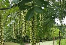 青钱柳 Il jinsk.),胡桃科青钱柳属的落叶乔木植物。枝裸芽具柄,密锈褐色腺鳞;枝条髓部薄片状分隔;叶奇数羽状复叶,基部歪斜,宽楔形或近圆,具锐锯齿;花雌雄同株;雌、雄花序均葇荑状;果具短柄,…全部>>