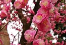 宫粉梅 Rehd.)是蔷薇科、李属植物,梅花品系中真梅系直枝梅类宫粉型,其花复瓣至重瓣,呈或深或浅的红色。落叶乔木,高达10米。树干褐紫色,有纵驳纹,小枝细而无毛,多为绿色。叶广卵形至卵形,…全部>>