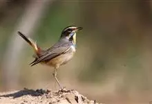 蓝点颏亦称“蓝喉歌鸲”,通称蓝靛颏儿。身体大小和麻雀相似,体长12-13厘米,体重17-18克。头部、上体主要为土褐色。眉纹白色。尾羽黑褐色,基部栗红色。颏部、喉部辉蓝色,下面有黑色横纹。下体白色。…全部>>