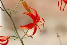 山丹是百合科百合属的多年生草本植物。鳞茎卵形或圆锥形,鳞片长圆形或长卵形,白色;叶散生茎中部,线形,边缘有乳头状突起;花单生或数朵成总状花序,花鲜红色,常无斑点,花被片反卷,…全部>>
